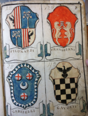 | 19:50, 13 set 2017 | GLMB C 27r.JPG (file) | 703 KB | Massimop | BIBLIOTECA CASANATENSE MS 4006 - Armi gentilizie delle più illustri famiglie romane - Pagina C_27r<br/> Licenza Attribuzione-Non commerciale-Condividi allo stesso modo 3.0 Unported '''(by-nc-sa/3.0)''' (vedi Armoriale:Copyright... | 1 | |