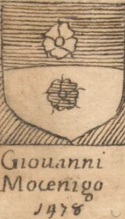 88 KB | Massimop | Stemma della famiglia Mocenigo <br/> Licenza Creative Commons Attribuzione - Non commerciale - Non opere derivate 4.0 Unported '''(CC BY-NC-ND 4.0)''' (vedi [https://creativecommons.org/licenses/by-nc-sa/4.0/deed.it Testo in italiano])<br/> L'immagine non è stata modificata rispetto all'originale pubblicato nel sito [https://www.techeudine.it/manoscritti www.techeudine.it]. <br/> L'immagine è tratta dal manoscritto 1201, facente parte del Fondo Principale custodito nella [https://www.sbhu.it... | 1 |