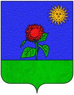 (FR) D'azur au tournesol de gueules tigé et feuillé de sinople terrassé du même acc d'un soleil d'or posé au canton senestre du chef | |