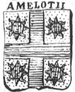 Amadei (LAZ) (Roma) (IT) d'oro, alla croce di rosso, caricata da cinque crescenti d'argento, e accantonata da quattro torte d'azzurro, ciascuna caricata da un agnello pasquale d'argento (il disegno originale porta gli agnelli nimbati d'argento e con la testa rivoltata) (citato in GLMB n. 016) |