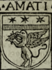 | Amorea (CAL) (Catanzaro) (IT) tre monti, il di mezzo eccedente a gli altri in grandezza, sopra del quale in campo ceruleo posa con un piede una grua, tenendo con il destro piede una pietra, e una stella sopra la testa, a torno lo scudo sta questo motto Spero avanzar con la vigilia il sonno (citato in MHCZ pag. 249 e pag. 256) | |