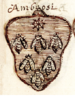 | Amalberti (XXX) (xxx) (IT) d'argento al cuore di rosso; al capo d'azzurro, caricato di tre gigli d'oro posti fra i quattro pendenti di un lambello di rosso (d'Angiò) (citato in AIAR) | |