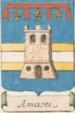 | Amossi (XXX) (xxx) (IT) d'azzurro alla sbarra d'argento; al castello di rosso fondato nella punta dello scudo, torricellato al centro di una torre di due palchi, tutto merlato alla guelfa, aperto e finestrato del campo attraversante sul tutto (citato in AIAR) | |