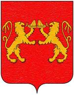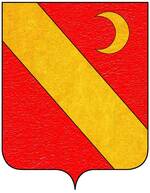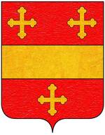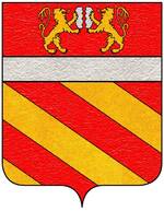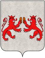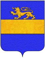 (FR) De gueules à deux lions affrontés d'or tenant de leurs pattes un pain arrondi du même | |