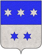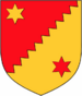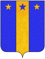 (FR) Coupé d'azur à une étoile (8) d'or sur gueules plein à une fasce diminuée d'or brochant sur le coupé | |