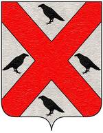 (FR) De gueules à l'aigle partie d'argent et de sable becquée membrée et couronnée d'or | |