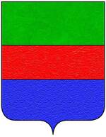 (IT) Interzato in banda, di rosso (?), d'argento e d’azzurro, con il capo d'oro, carico di un'aquila di nero | |