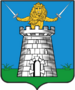 (FR) D'azur à une tour d'argent le bois de la porte muni de vertenelles de sable la tour sommée d'une aigle de sable | |