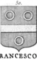 | Franceschina (XXX) (xxx) (IT) partito; nel 1° di rosso alla fascia d’argento, accompagnata sopra da una stella di sei raggi d’oro e sotto da un crescente montante dello stesso; nel 2° d’azzurro alla banda d’argento, caricata di tre rose di rosso (citato in AIAR) | |