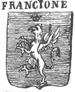 | Franzoni o Franzone (LOM) (Brescia) Titolo: patrizio di Brescia (IT) Trinciato di rosso e di nero con la banda d'argento attraversante sulla partizione e il capo d'oro, all'aquila di nero | |