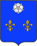 (FR) D'azur au chevron d'or acc en chef de trois fleurs-de-lis rangées du même et en pointe d'une rose de gueules | |