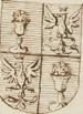 (IT) Di rosso, a tre animali (martore) rampanti d'argento, 2.1, i due affrontati | |