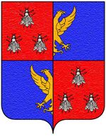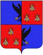 (IT) (inquartato: nel 1° e 4° di rosso, a tre api male ordinate d'argento; nel 2° e 3° d'azzurro, alla mezza aquila d'oro uscente dalla partizione) | |