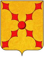 (IT) (d'oro, alla palla posta in cuore, da cui si dipartono quattro coppie di losanghie accollate, con i lati concavi, poste in decusse, il tutto di rosso) | |