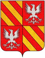 (IT) 9 losanghe di cui 5 poste in banda su 4 poste in sbarra tutto di rosso su oro | |