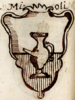 | Mioli (EMI) (Cento) (IT) diviso in due: la meta sotto rossa e la meta sopra d’argento. E nella divisione campeggiava un vaso col pizzo largo, che noi volgarmente dimandiamo bottazzo e serve communemente al uso del oglio, di colore come di terra, rivolto col pizzo medesimo a destra (citato in BGNI) (citato in AIAR) | |