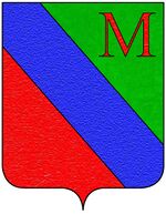 (IT) (trinciato di verde e di rosso, alla banda d'azurro, attraversante sul tutto, accompagnata nel cantone sinistro del capo da una lettera maiuscola M di rosso) | |