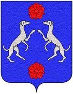 (IT) (d'azzurro, a due levrieri d'argento controrampanti, collarinati di rosso, accompagnati da due rose dello stesso poste una in capo e l'altra in punta) | |