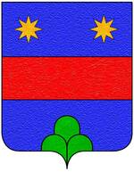 (IT) (di rosso, alla banda scaccata di tre fila, quella di mezzo composta da argento e d'oro, e le altre due d'oro e di azzurro, accompagnata da tre stelle d'oro, le due del capo costeggianti la banda) | |