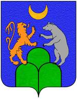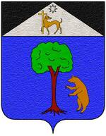 (IT) d'azzurro al monte di tre cime di verde, la cima di destra sormontata da un leone e quella di sinistra da un orso controrampanti al naturale accompagnati in capo da un crescente montante d'oro |
