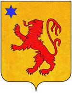 (FR) D'azur au lion d'or au chef du même ch de trois visages de ... | |