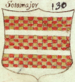 (FR) De gueules à une maison d'argent en chef la façade à dextre ouverte et ajourée de sable le tout couvert de tuiles et un avant-bras en pointe paré d'argent mouv du flanc senestre la main de carnation supp une colombe contournée d'argent | |