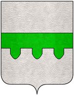 d'argento, alla fascia merlata inferiormente alla guelfa di verde