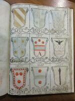 | 21:26, 26 dic 2018 | 3 864 × 5 152 (5,96 MB) | Massimop (discussione | contributi) | Pagina 158 del manoscritto 316<br/> Licenza Attribuzione-Non commerciale-Condividi allo stesso modo 3.0 Unported '''(by-nc-sa/3.0)''' (vedi Armoriale:Copyright)<br/> L'immagine è tratta dal manoscritto 316 custodito nella [http... |