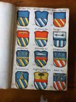| 20:55, 21 mag 2019 | 1 936 × 2 592 (1,87 MB) | Massimop (discussione | contributi) | Pagina 52 manoscritto 321<br/> Licenza Attribuzione-Non commerciale-Condividi allo stesso modo 3.0 Unported '''(by-nc-sa/3.0)''' (vedi Armoriale:Copyright)<br/> L'immagine è tratta dal manoscritto 321 custodito nella [http://ww... |