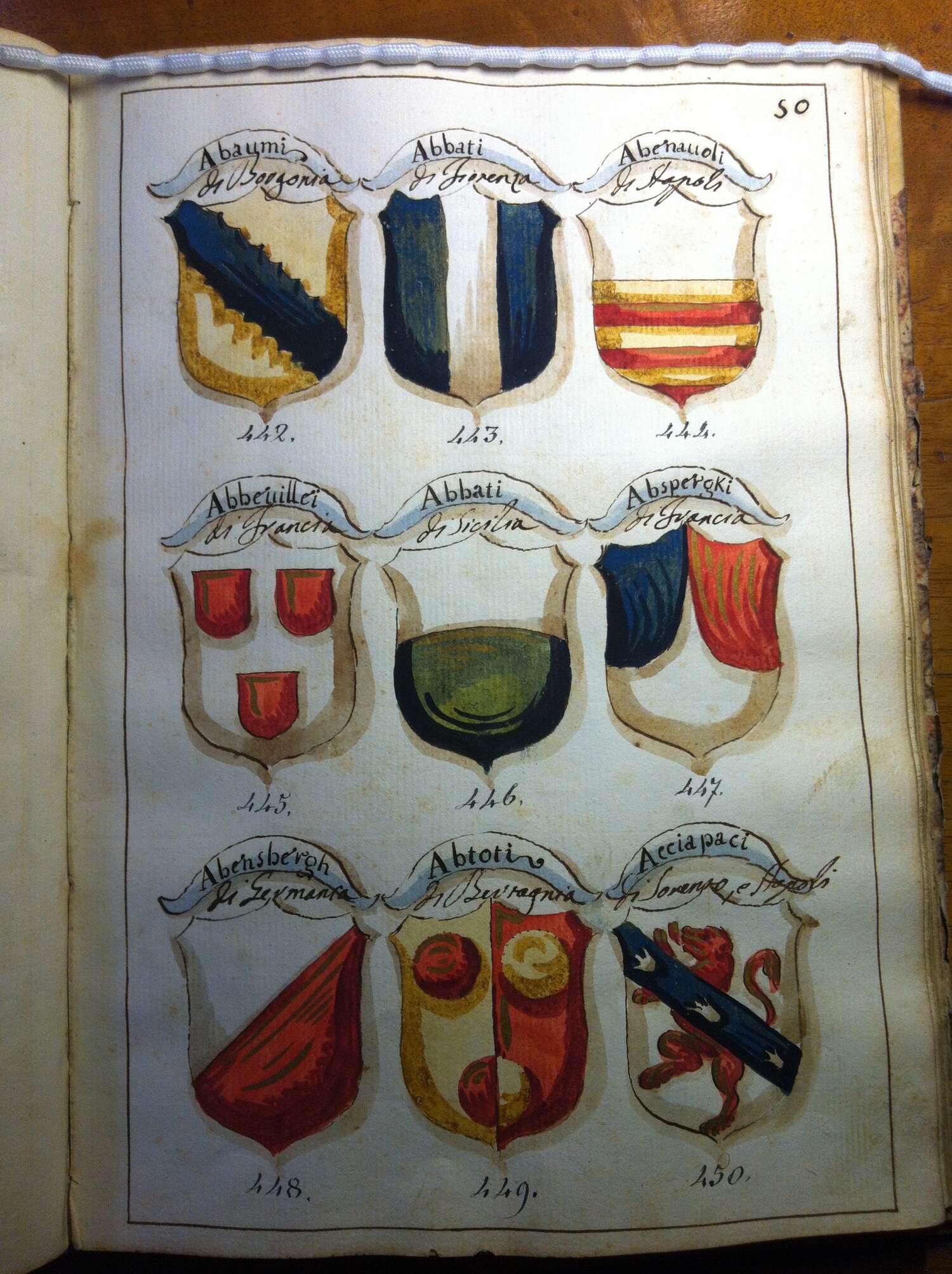 | 20:13, 22 mag 2019 | 1 936 × 2 592 (2,09 MB) | Massimop (discussione | contributi) | Pagina 50 del manoscritto 322<br/> Licenza Attribuzione-Non commerciale-Condividi allo stesso modo 3.0 Unported '''(by-nc-sa/3.0)''' (vedi Armoriale:Copyright)<br/> L'immagine è tratta dal manoscritto 322 custodito nella [http:... |