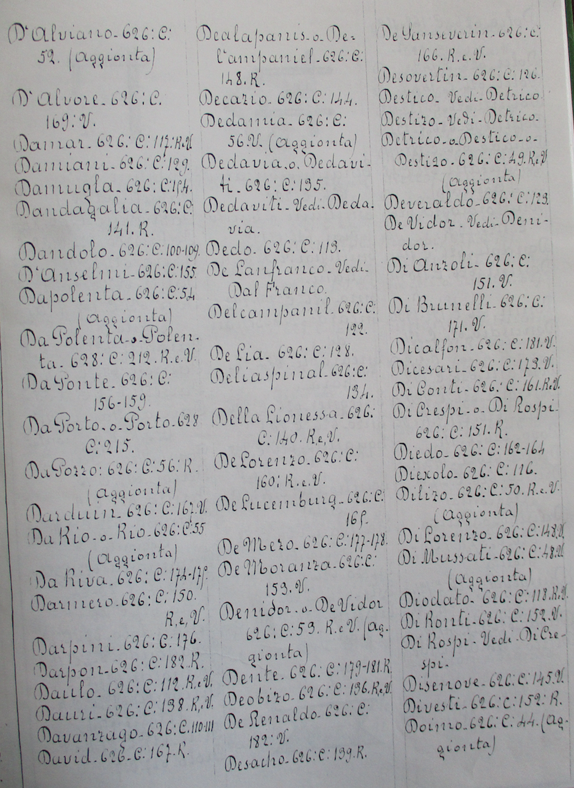 Pagina 07 del Repertorio generale alfabetico delle famiglie dei manoscritti 625-629