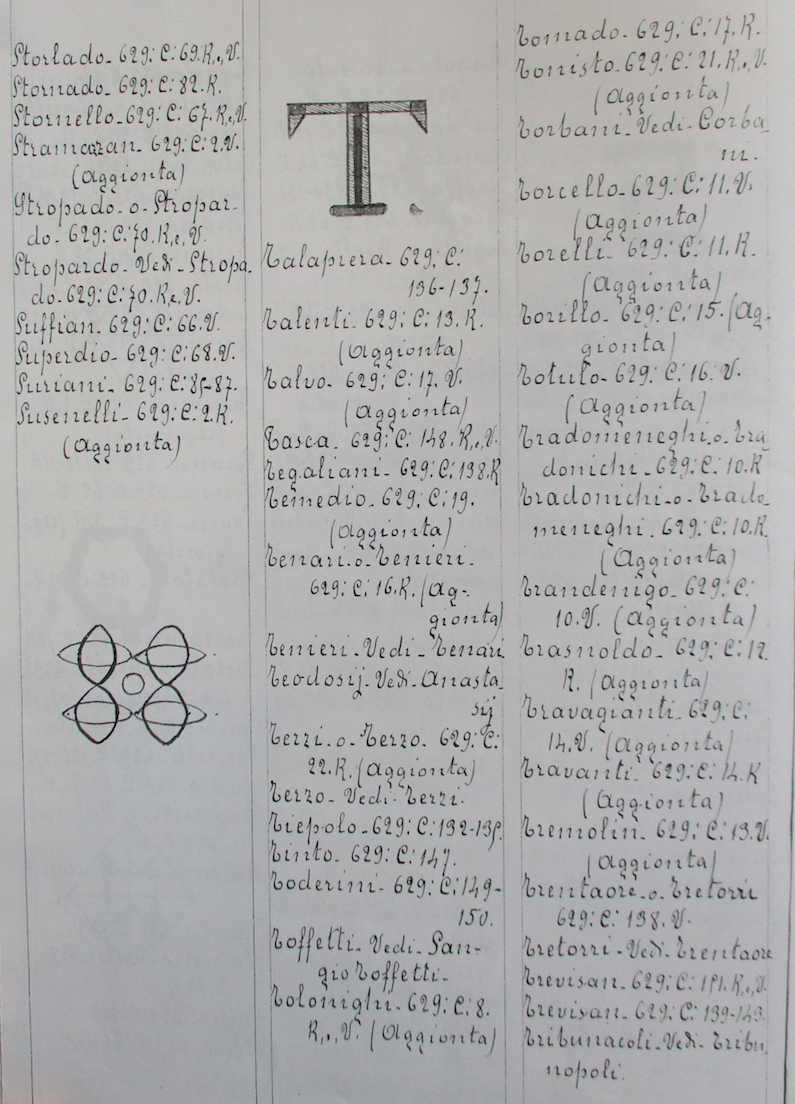 Pagina 16 del Repertorio generale alfabetico delle famiglie dei manoscritti 625-629