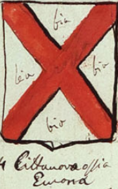 L'immagine è tratta dal manoscritto 206 Minutario di stemmi, manoscritto cartaceo del XIX secolo (1899), facente parte del Fondo Joppi custodito nella Biblioteca Civica "Vincenzo Joppi" di Udine.