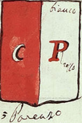 L'immagine è tratta dal manoscritto 206 Minutario di stemmi, manoscritto cartaceo del XIX secolo (1899), facente parte del Fondo Joppi custodito nella Biblioteca Civica "Vincenzo Joppi" di Udine.