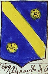 L'immagine è tratta dal manoscritto 206 Minutario di stemmi, manoscritto cartaceo del XIX secolo (1899), facente parte del Fondo Joppi custodito nella Biblioteca Civica "Vincenzo Joppi" di Udine.