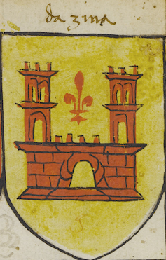 | attuale | 22:48, 10 apr 2021 | 237 × 371 (209 KB) | Massimop (discussione | contributi) | Stemma della famiglia Da Zina<br/> L'immagine è tratta dal manoscritto 1390 (Codice Trivulziano) custodito nella Biblioteca Trivulziana (https://trivulziana.milanocastello.it/). Il Comune di Milano, titolare dei diritti dell'opera, ne ha esplicitamente autorizzato la pubblicazione su questo sito con il vincolo dell'uso non commerciale delle immagini ed il divieto della loro successiva ridistribuzione. Ogni richiesta relativa all'uso di tali immagini deve essere inoltrata direttamente all'indi... |