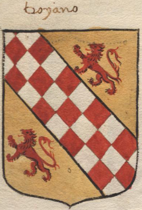 L'immagine è tratta dal manoscritto Escudos iluminados de Italia o Libro llamado Pequin di N. Andreu), custodito nella Biblioteca Digital Hispanica MSS/12596