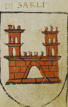| attuale | 20:09, 11 apr 2021 | 229 × 360 (197 KB) | Massimop (discussione | contributi) | Stemma della famiglia Di Sarli<br/> L'immagine è tratta dal manoscritto 1390 (Codice Trivulziano) custodito nella Biblioteca Trivulziana (https://trivulziana.milanocastello.it/). Il Comune di Milano, titolare dei diritti dell'opera, ne ha esplicitamente autorizzato la pubblicazione su questo sito con il vincolo dell'uso non commerciale delle immagini ed il divieto della loro successiva ridistribuzione. Ogni richiesta relativa all'uso di tali immagini deve essere inoltrata direttamente all'ind... |