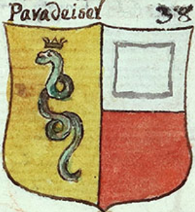L'immagine è tratta dal manoscritto 535 360 stemmi colorati, di cui buona parte friulani e goriziani, facente parte del Fondo Joppi custodito nella Biblioteca Civica "Vincenzo Joppi" di Udine.