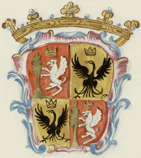 L'immagine è tratta dal manoscritto Teatro genealogico delle famiglie nobili milanesi. di anonimo), custodito nella Biblioteca Digital Hispanica MSS/11500 (vol. 1 e vol. 2)