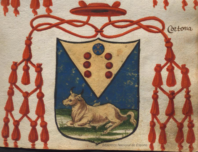 L'immagine è tratta dal manoscritto Escudos iluminados de Italia o Libro llamado Pequin di N. Andreu), custodito nella Biblioteca Digital Hispanica MSS/12596