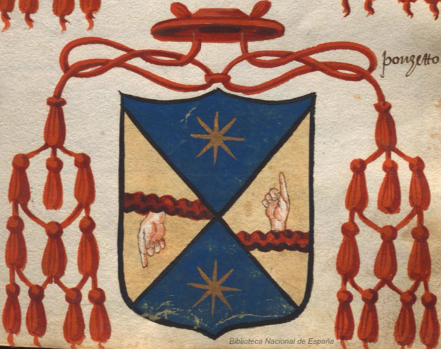 L'immagine è tratta dal manoscritto Escudos iluminados de Italia o Libro llamado Pequin di N. Andreu), custodito nella Biblioteca Digital Hispanica MSS/12596