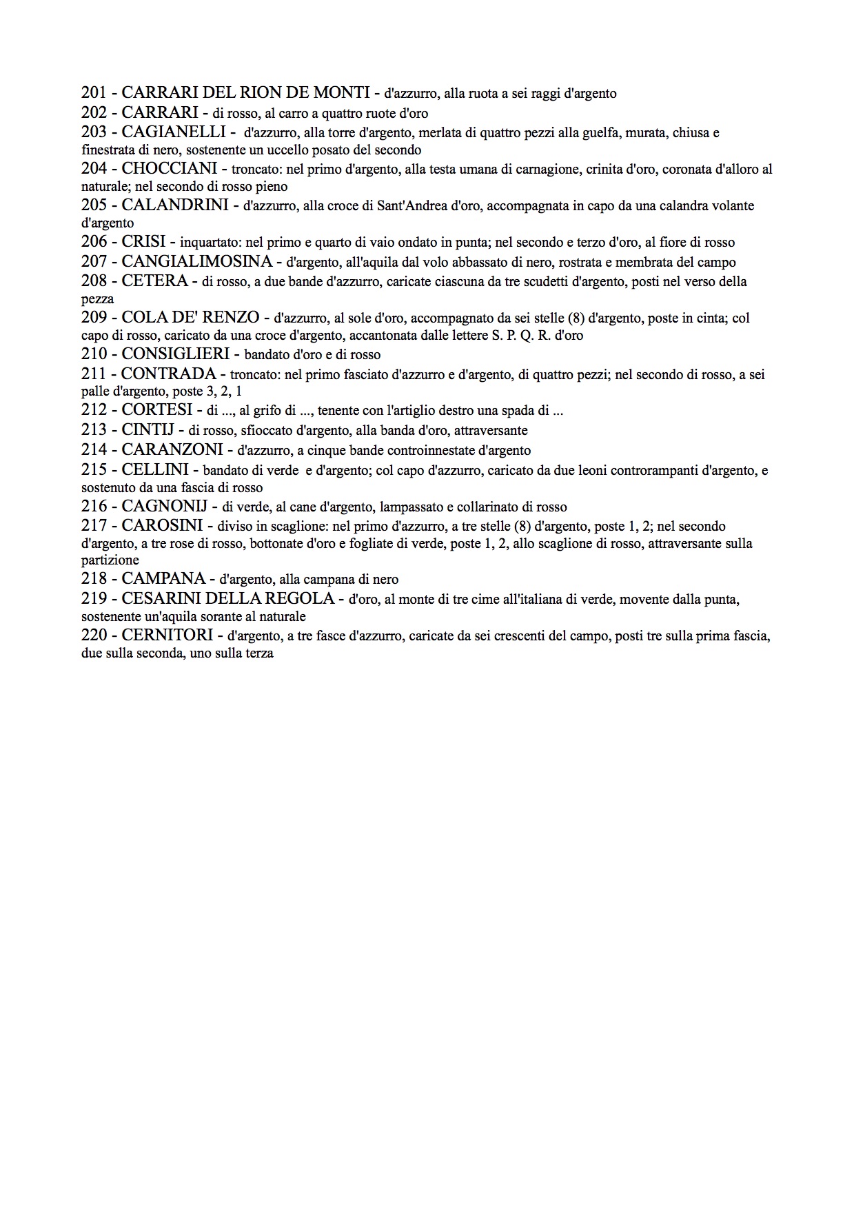 BIBLIOTECA CASANATENSE MS 4006 - Armi gentilizie delle più illustri famiglie romane - blasonature relative agli stemmi di pagina C_06r